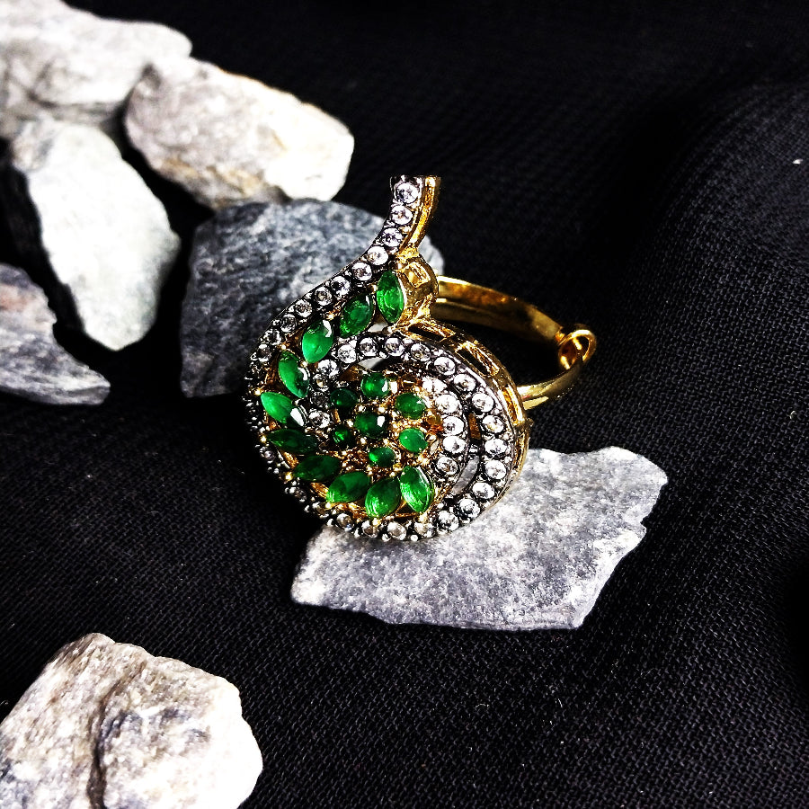 Green Stone Zircon Spiral Ring